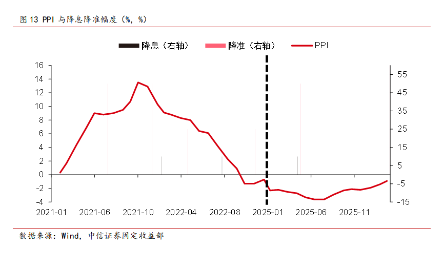 除汇率环境外,国内基本面和通胀水平也是央行决策的重要考量。一方面,2025年下半年以来多项经济指标边际走弱,显示出我国“供强需弱”的矛盾依然突出。另一方面,近期美以对伊朗军事打击导致原油价格大幅上涨,也快速推升了国内通胀预期,不过在央行多目标货币政策框架下,油价上涨导致的输入性通胀对货币宽松的制约或相对有限。回顾2021-2022年原油飙升带动国内PPI同比快速上行的时期,考虑到经济内生动能持续偏弱,央行依旧开展了多轮降准降息并使用MLF等工具持续投放流动性,不过降息的节奏略缓,在PPI同比增速见顶会落后才落地。整体看,2021-2022年7天期逆回购利率共计下调20Bps,存款准备金率合计下调150Bps。